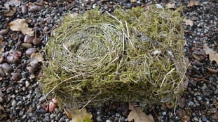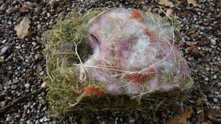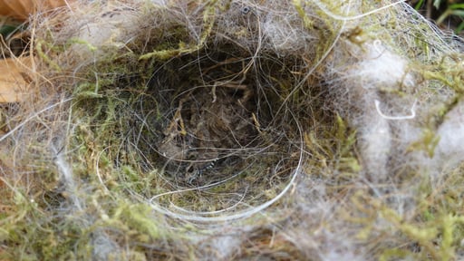 Meisen benutzen für ihre Nester weiches Material. Vor allem Moos findet man in jedem Meisennest. In dem quaderförmigen Nest aus einem Kasten hat die Meise ein Kissen aus Stofffasern vom Friedhof gefilzt. Kleinere Beispiele dieser Kunst haben wir in drei Nestern gefunden. Unten sieht man die runde Struktur, mit der der Vogel angefangen hat, zu bauen.