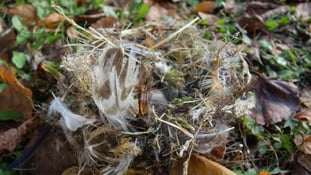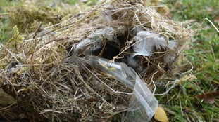 Spatzen dagegen nehmen alles Mögliche zum Bauen. In ihren Nestern findet man Müll, Federn, Grashalme und was es sonst noch so gibt. Im rechten Nest war ein Spatz drin, als wir den Kasten geöffnet haben. Der Spatz, der sein Nest hauptsächlich mit Federn vom Bauernhof gebaut hat, ist erstmal verdutzt vor Bene weggeflogen.