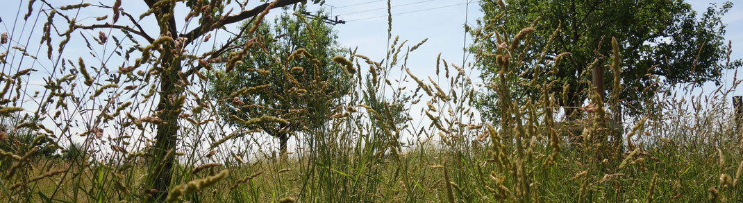 Die Exkursionen fanden auf dem Bio-Bauernhof "Gersthof" statt, der uns seine Wiesen zur Verfügung gestellt hatte. Da sich durch Corona der Projektstart ein wenig nach hinten verschoben hatte, verpassten wir leider die Hauptblüte von vielen Blumen und Pflanzen. Dennoch fanden wir eine erstaunliche Vielfalt vor, die ich so auf dem ersten Blick gar nicht erwartet hatte. Aber so konnten wir uns motiviert ans Werk machen: Als erstes mussten die Feldforscher ihre Forscherfläche von zwei Meter mal einem halben Meter abstecken, damit sie vergleichbare Ergebnisse für die weitere Auswertung im Unterricht erhielten. Dann sollten sie mit Hilfe ihres Forscherprotokolls verschiedene Blühpflanzen und Gräser bestimmen. Dazu bekamen sie auch Bestimmungsbücher und eine App zur Verfügung gestellt. Das Buch, welches zur Ausrüstung gehörte, umfasste leider nicht alle Blühpflanzen. Mit der App ging das natürlich viel einfacher. Für die Schulklassenexkursion brachten die Lehrkräfte daher ein ausführlicheres dickeres Buch mit. Ich bin ständig zwischen den Gruppen und Forscherflächen hin und her geflitzt und habe bei der Bestimmung geholfen und dabei auch ein paar neue Pflanzen kennengelernt. Faszinierend fand ich, dass sich die Wiese innerhalb einer Woche teilweise so schnell verändert hatte, dass wir eigentlich bei jeder Exkursion wieder neue Pflanzen entdeckten.