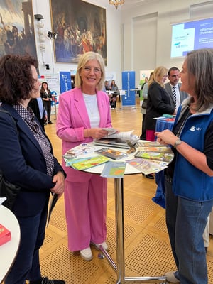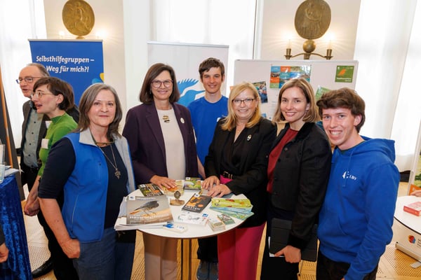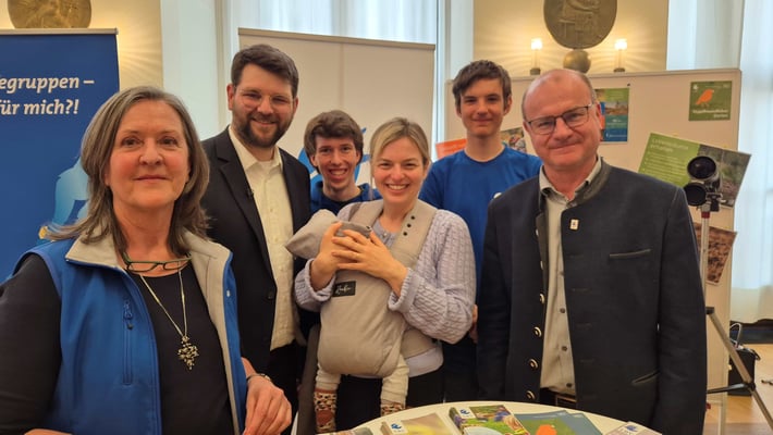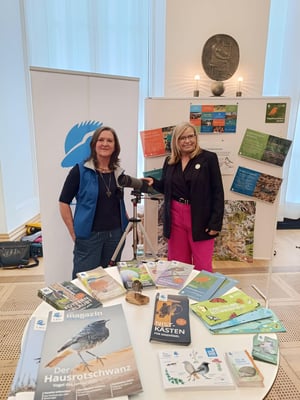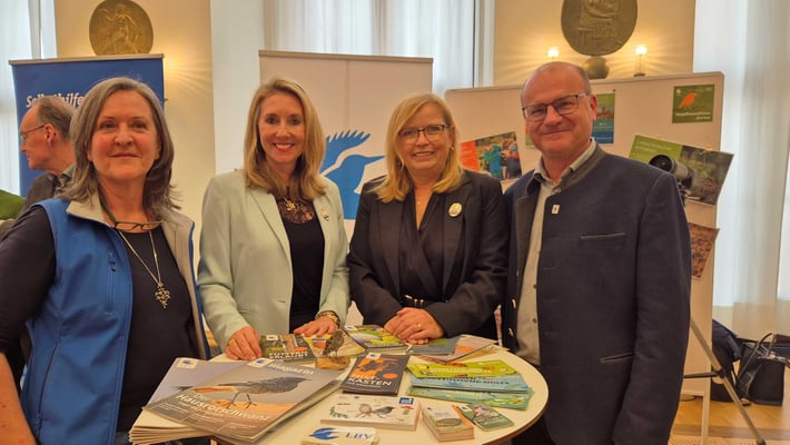 Am 9. April 2025 fand im Bayerischen Landtag der erste Informationstag Ehrenamt statt. Dieser wurde von der Landesarbeitsgemeinschaft für Freiwilligenarbeit (LAGFA) und dem Landesnetzwerk Bürgerschaftliches Engagement (LBE) im Senatssaal des Bayerischen Landtags organisiert. Mit dieser Veranstaltung sollten die Abgeordneten des Landtags die Möglichkeit bekommen, sich über die Vielfalt der ehrenamtlichen Strukturen in Bayern zu informieren. In ihrer Eröffnungsrede hob Landtagspräsidentin Ilse Aigner die große Bedeutung des Ehrenamts hervor. Auch die Bayerische Ehrenamtsbeauftragte Gabi Schmidt lobte die anwesenden Organisationen für ihr herausragendes Engagement für die Gesellschaft. Der Infotag Ehrenamt stieß bei den Abgeordneten auf erfreuliche Resonanz. Am Infostand des LBV konnten wir die Landtagspräsidentin Ilse Aigner, Familienministerin Ulrike Scharf, Kultusministerin Anna Stolz, die Fraktionsvorsitzende der Bayerischen Grünen Katharina Schulze, die Bayerische Ehrenamtsbeauftragte Gabi Schmidt, die Landtagsabgeordnete Laura Weber, den stellvertretenden Ministerpräsidenten Hubert Aiwanger, den Abgeordneten der Grünen Jo Becher und weitere interessierte Abgeordnete, sowie Vertreter*innen der anderen Organisationen begrüßen. (Bilder Stefan Obermeier, Jonathan Blachnitzky)